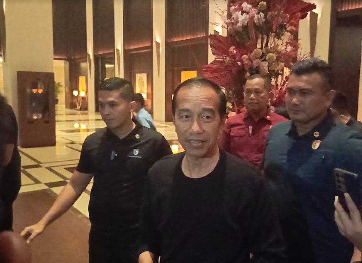 JAKARTA – Presiden RI Jokowi Widodo (Jokowi) mendatangi Hotel Fairmont yang berlokasi di Jalan Asia-Afrika nomor 8, Senayan, Jakarta Pusat pada Sabtu (10/2/2024) malam.