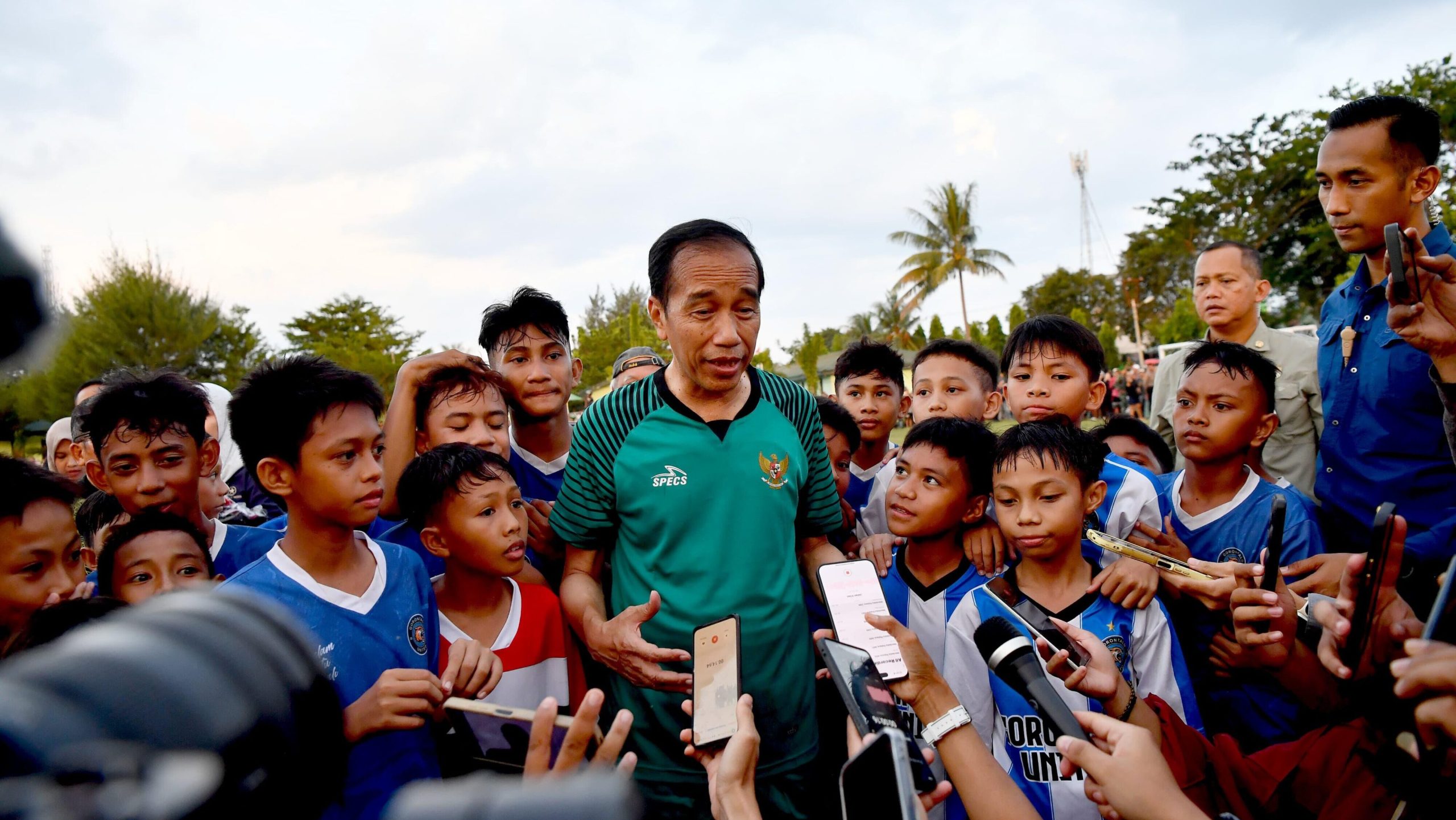 Sebelumnya, Presiden Jokowi bermain bola dengan sejumlah anak-anak di lapangan tersebut. Pertandingan tersebut dikatakan Presiden Jokowi sebagai ajang persiapan untuk mendukung timnas Indonesia di laga melawan Yordania yang akan digelar di Stadion Abdullah bin Nasser bin Khalifa, Qatar.