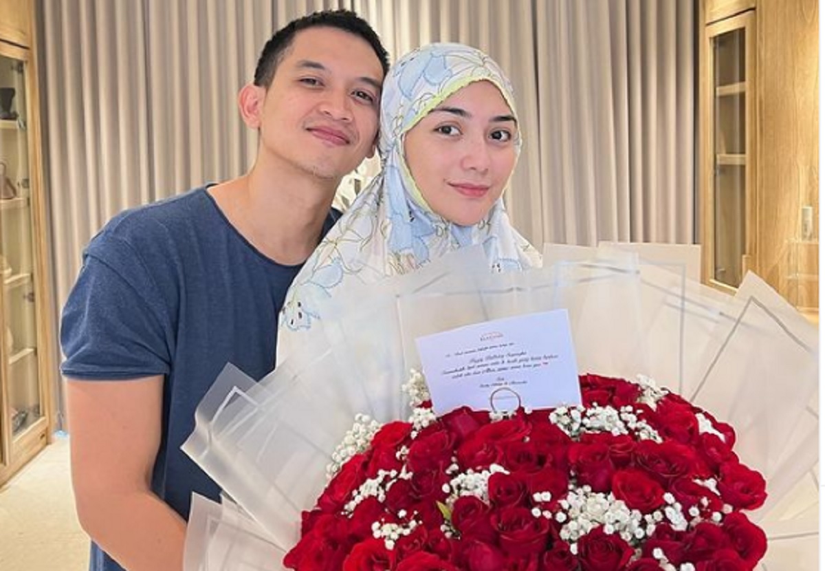 Dari foto yang diunggah Rezky, ia dan sang putra Athar kompak mendaratkan ciuman masing-masing di pipi kiri dan kanan Ciki. Lalu, Rezky juga sempat berpose bersama sang istri yang tampak semringah memamerkan buket bunga darinya.
