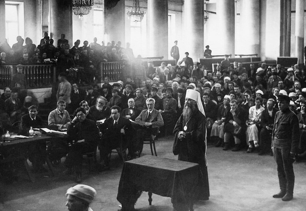 4. Pada saat yang sama, kaum Bolshevik melancarkan kampanye antiagama, menyita aset gereja, dan menangkap serta mengadili para pendeta secara massal.