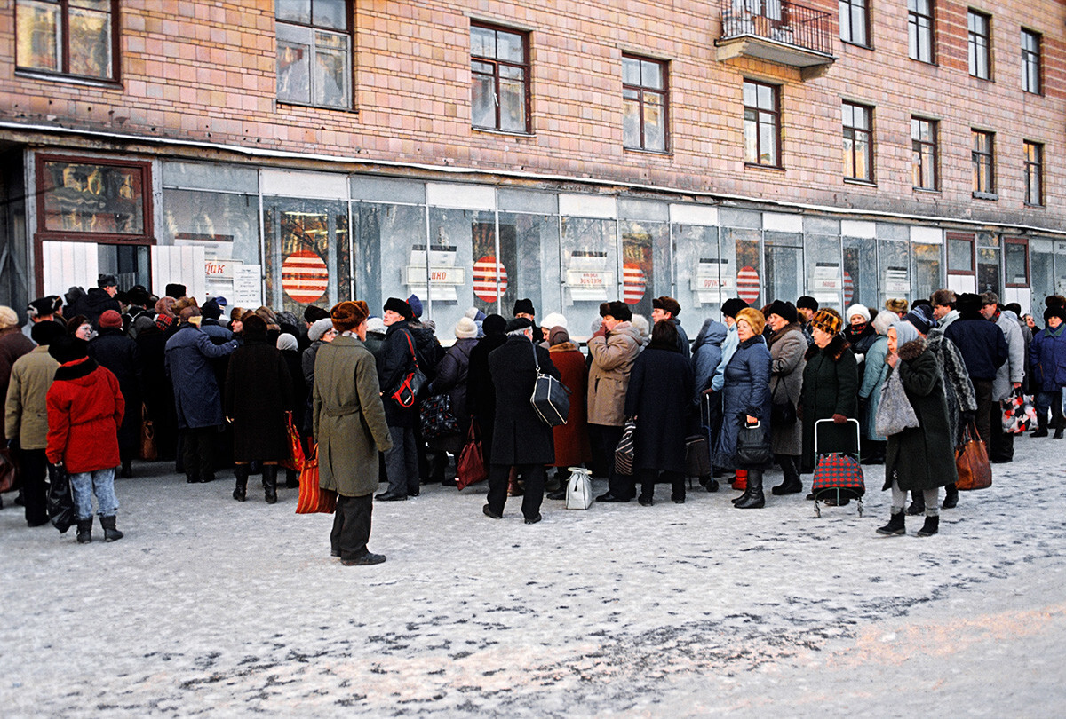18. Tahun 1980-an ditandai dengan meninggalnya dua pemimpin Soviet satu per satu setelah keduanya berkuasa selama kurang lebih satu tahun. Ada juga krisis ekonomi, kelangkaan parah, rak toko kosong, dan antrean besar ke toko. Akhirnya, pada tahun 1986, bencana terbesar terjadi — ledakan di PLTN Chernobyl. Semua peristiwa itu menunjukkan perlunya reformasi besar-besaran di negara ini. Beginilah perestroika Gorbachev dimulai.