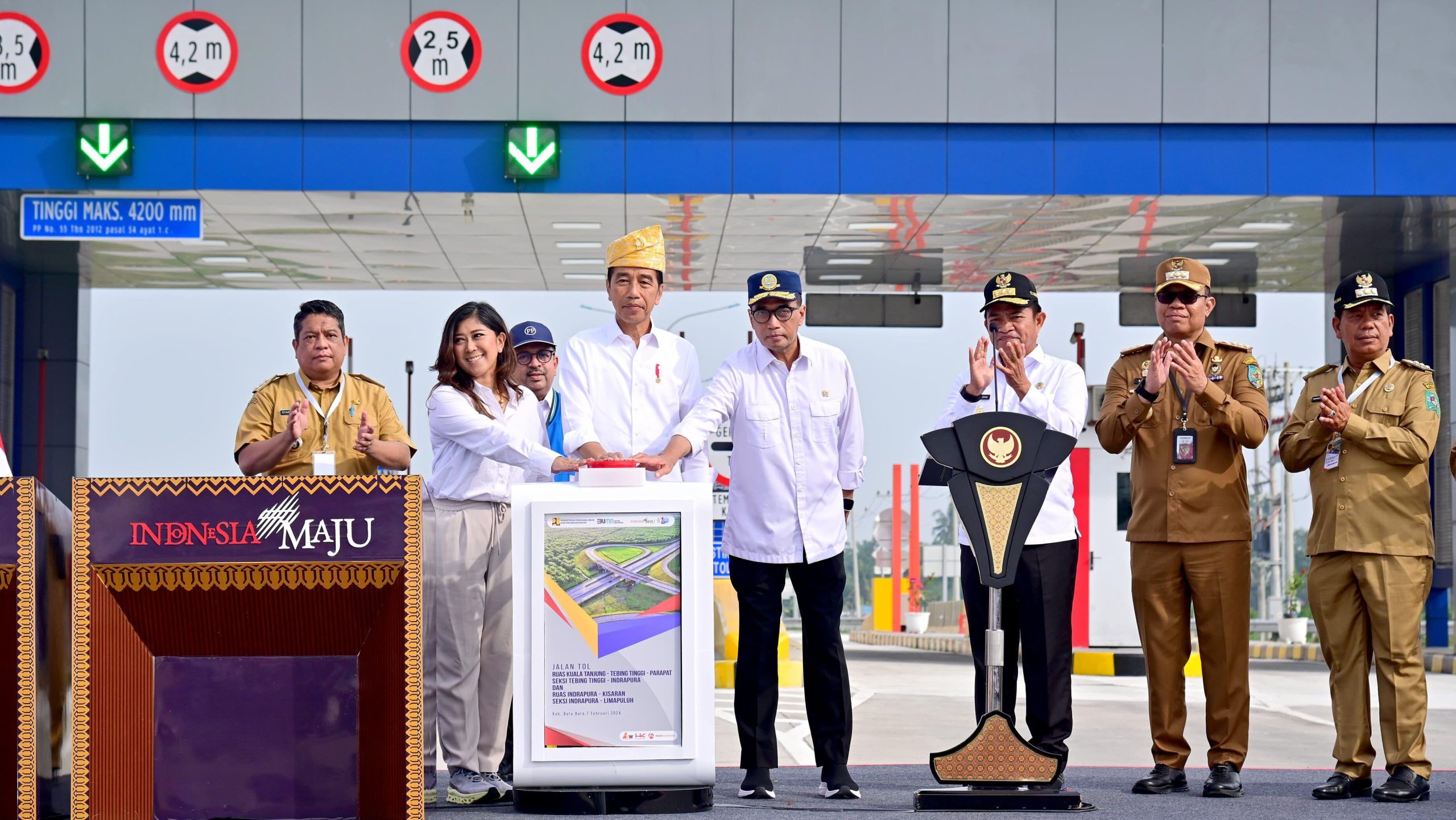 Presiden Joko Widodo meresmikan jalan tol ruas Kuala Tanjung-Tebing Tinggi-Parapat seksi Tebing Tinggi-Indrapura, dan jalan tol ruas Indrapura-Kisaran seksi Indrapura-Limapuluh di Gerbang Tol Limapuluh, Kabupaten Batubara, Provinsi Sumatra Utara, pada Rabu, 7 Februari 2024. Presiden menyampaikan bahwa jalan tol Tebing Tinggi-Indrapura memiliki panjang ruas 20,4 kilometer dan jalan tol seksi Indrapura-Limapuluh memiliki panjang 15,6 kilometer.