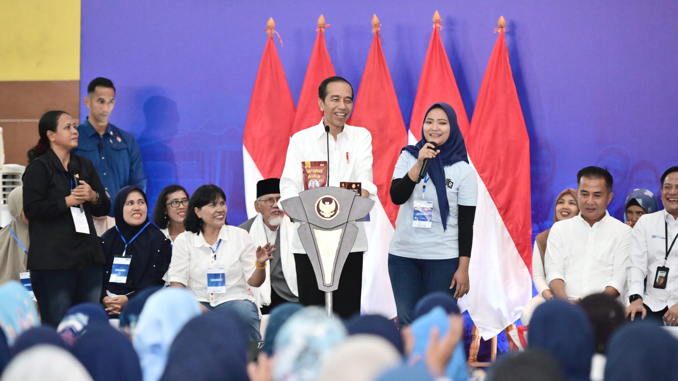 Presiden Joko Widodo mendorong agar keuntungan usaha yang didapat dari program Membina Ekonomi Keluarga Sejahtera (Mekaar) dipergunakan sebagai investasi. Hal tersebut disampaikan Presiden saat bersilaturahmi dengan nasabah program Mekaar Binaan Permodalan Nasional Madani (PNM) di GOR Basket Bekasi, Kota Bekasi, Provinsi Jawa Barat, pada Jumat, 16 Februari 2024.