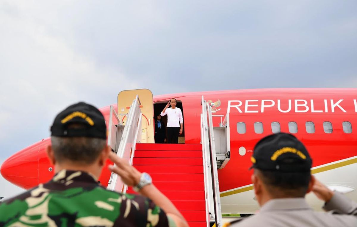 Melalui Pangkalan TNI AU Halim Perdanakusuma, Jakarta, Kepala Negara dan rombongan lepas landas sekitar pukul 12.10 WIB menggunakan Pesawat Kepresidenan Indonesia-1.