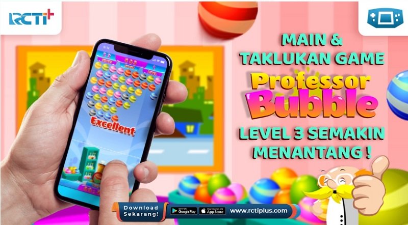 Ayo buktikan sekarang juga untuk memainkan game Professor Bubble di Aplikasi RCTI+. Tunggu apa lagi download dan buka aplikasi RCTI+ di Play Store dan App Store untuk menikmati game – game dan konten seru lainnya melalui link https://www.rctiplus.com
