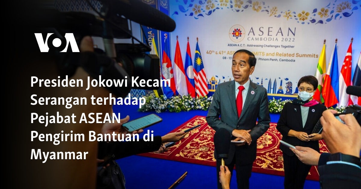 Presiden Joko Widodo, Senin (8/5), mengutuk serangan di Myanmar terhadap para pejabat Perhimpunan Bangsa-Bangsa Asia Tenggara (ASEAN) yang mengirimkan bantuan kemanusiaan. Jokowi yang juga menjabat sebagai Ketua ASEAN menyerukan diakhirinya kekerasan di negara yang dicabik-cabik oleh bentrokan itu.