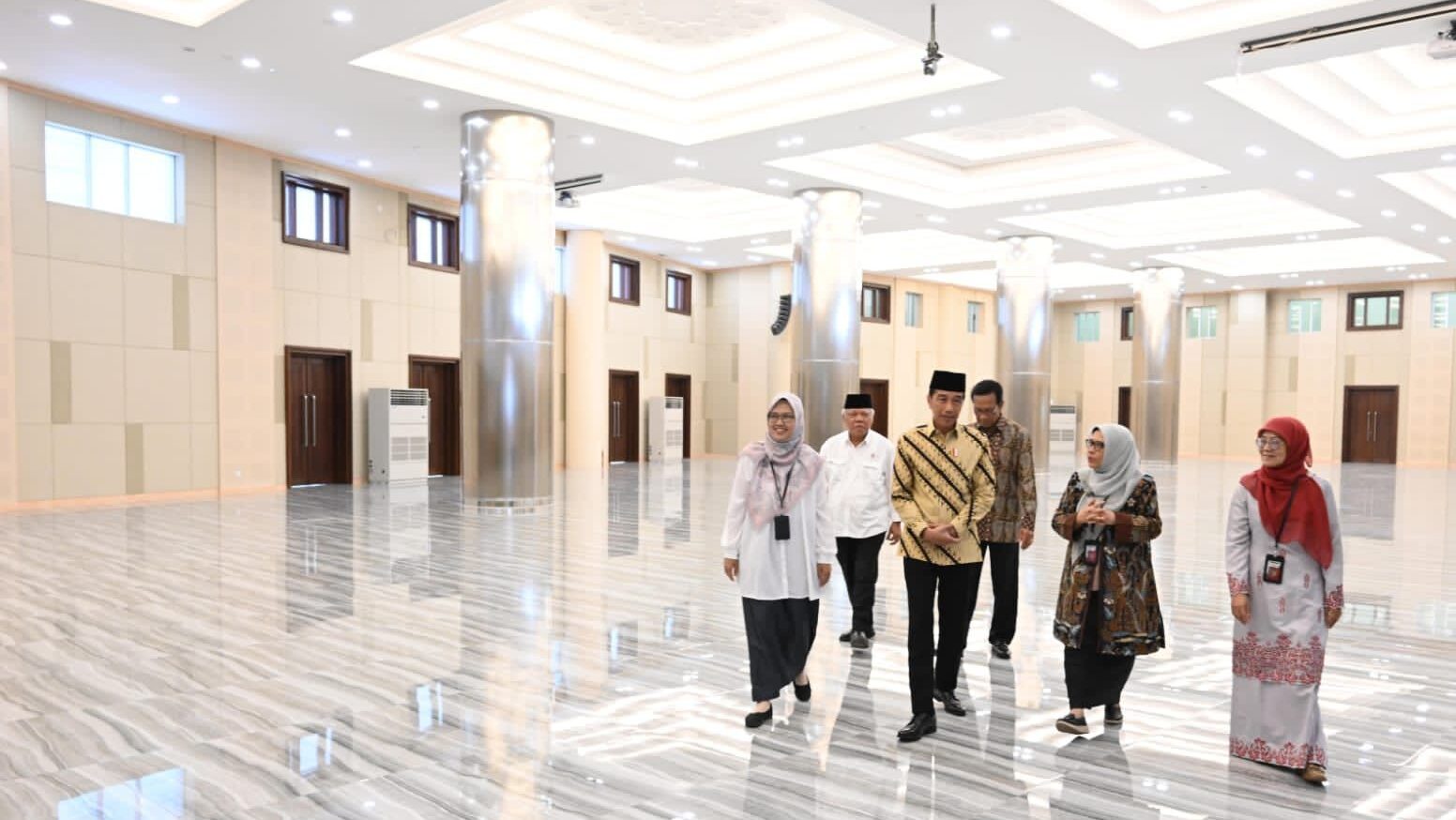 Presiden Joko Widodo meninjau Masjid Walidah Dahlan yang terletak di kawasan kampus Universitas Aisyiah (Unisa) Yogyakarta, Kabupaten Sleman, Daerah Istimewa Yogyakarta pada Rabu, 31 Januari 2024. Rektor Universitas Aisyiah Yogyakarta, Warsiti, yang mendampingi Presiden Jokowi selama peninjauan menjelaskan bahwa masjid tersebut dibangun tidak hanya untuk kepentingan civitas, tetapi juga masyarakat umum.
