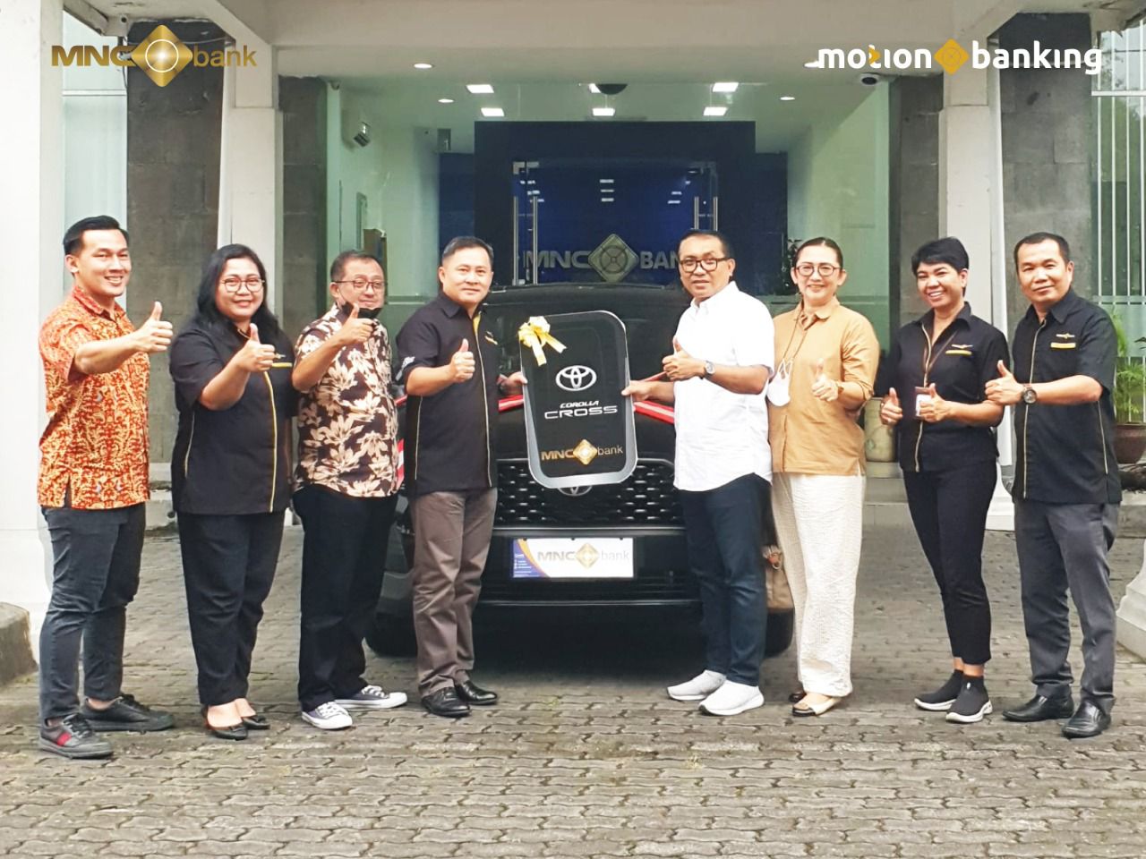 Presiden Direktur MNC Bank, Rita Montagna menyampaikan ucapan selamat kepada Tito Adji Siswantoro, yang berhasil mendapatkan hadiah mobil Toyota Corolla Cross Hybrid.