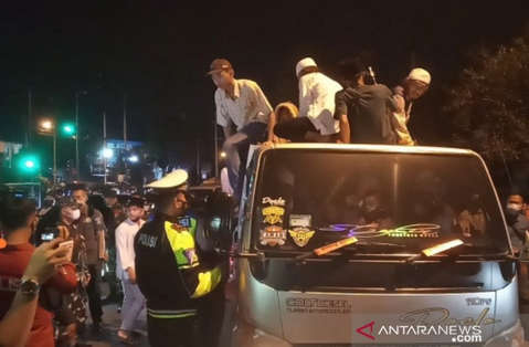 Puluhan orang yang rata-rata masih berusia remaja itu dipaksa turun, kemudian dipersilakan pulang dengan menumpang angkot. Sedangkan truk berpelat nomor B 9236 PDA yang mengangkut rombongan itu diputar balik oleh petugas.