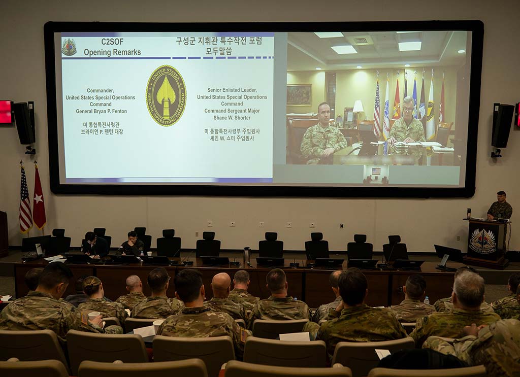 Sejumlah pemimpin operasi khusus multinasional berkumpul di Garnisun Humphreys Angkatan Darat Amerika Serikat, di dekat Pyeongtaek, Korea Selatan, pada akhir Februari 2024 untuk mengikuti forum Pasukan Operasi Khusus Komandan Komponen yang diselenggarakan oleh Komando Operasi Khusus A.S. di Korea (U.S. Special Operations Command Korea – U.S. SOCKOR).