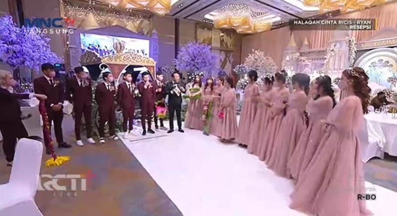 JAKARTA – Resepsi pernikahan Ria Ricis dan Teuku Ryan bertabur para bintang yang didapuk sebagai bridesmaid dan groomsmen hari ini, Sabtu (13/11/2021).