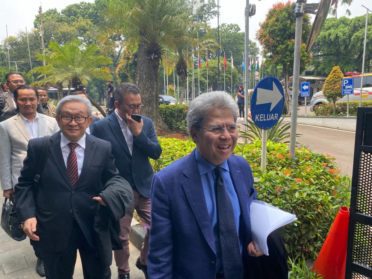 Selain tim hukum Ganjar-Mahfud, tim pembela Prabowo-Gibran, sebagai pihak terkait juga sudah hadir di gedung MK. Mereka yang terlihat seperti, ketua tim pembela Prabowo-Gibran, Yusril Ihza Mahendra, wakil ketua tim pembela Prabowo-Gibran, Otto Hasibuan beserta jajarannya.