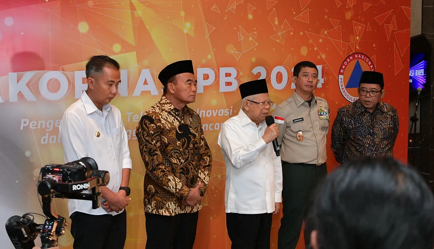 Mendampingi Wapres saat memberikan keterangan pers kali ini, Menteri Koordinator Bidang Pembangunan Manusia dan Kebudayaan Muhadjir Effendy, Kepala Badan Nasional Penanggulangan Bencana Suharyanto, Pj. Gubernur Jawa Barat Bey Machmudin, serta Staf Khusus Wapres Bidang Komunikasi dan Informasi Masduki Baidlowi. (EP/RJP-BPMI Setwapres)
