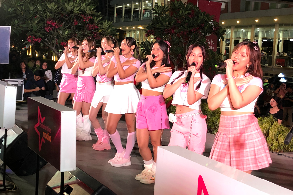 JAKARTA – Girl group V1RST menjadi salah satu musisi yang tampil di acara Music Zone di Anjungan Sarinah, Jakarta Pusat, Jumat (21/7/2023). Music Zone sendir merupakan acara yang digagas oleh Global Radio yang kini telah berganti nama menjadi e-Kompas.ID Radio.