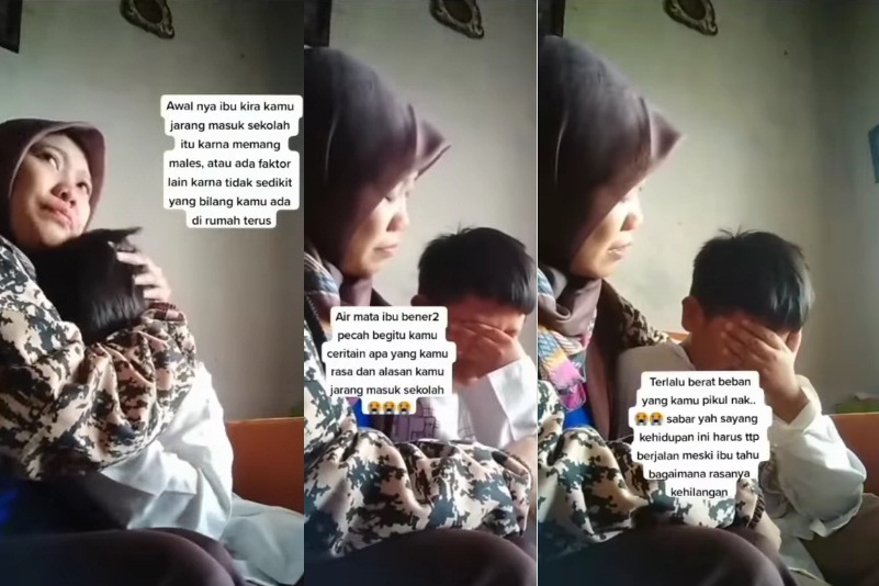 “Air mata ibu benar-benar pecah begitu kamu certain apa yang kamu rasa dan alasan kamu jarang masuk sekolah”, tulis guru tersebut.