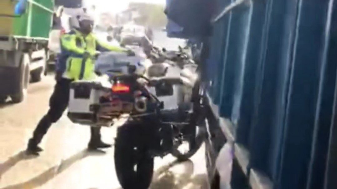Salah satu anggota Satlantas yang mencoba menghadang laju truk dengan memblokade menggunakan sepeda motornya, tetap tidak dihiraukan pengemudi truk. Sepeda motor yang menghalangi di jalan raya, ditabraknya hingga terjatuh dan truk terus mencoba kabur.